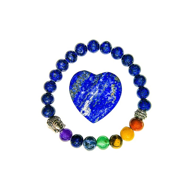 Deep Healing Light 7 Chakras Lapis Lazuli Bracelet and Heart Set for Third Ey...