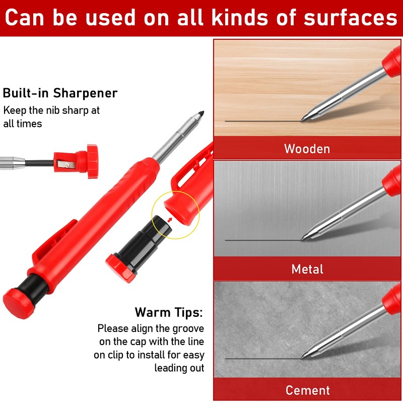 - Designed with refill, extends the life of the carpenter pencils, easy to use, strong and hard, not easy to break.