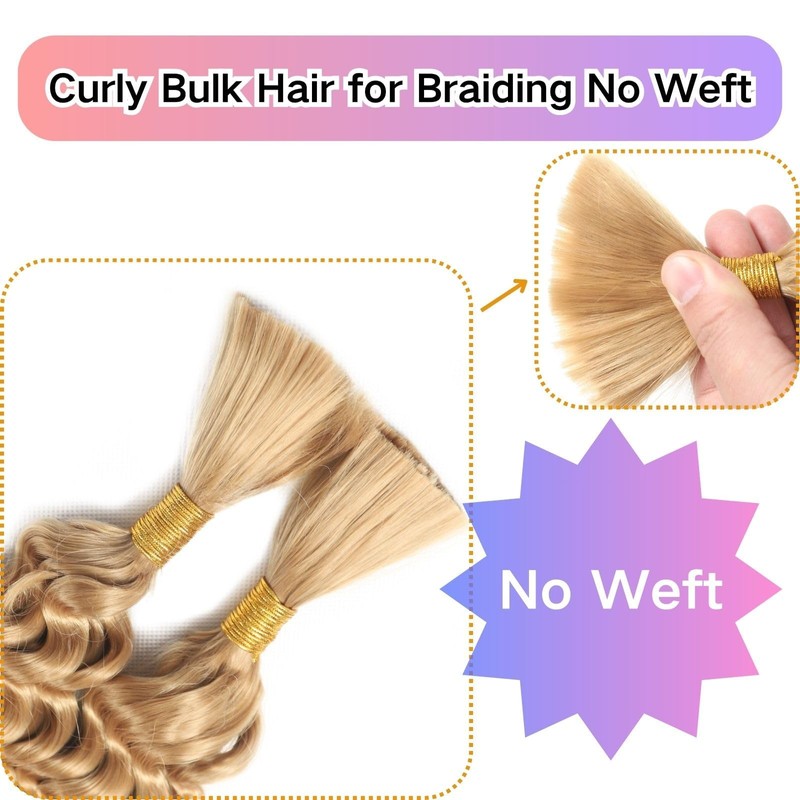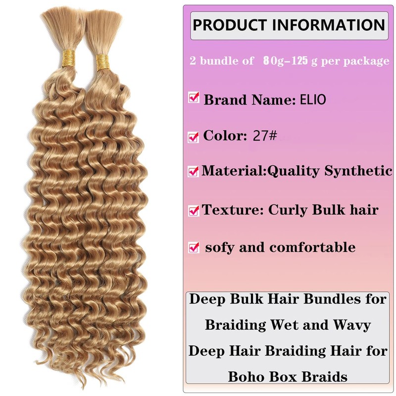 Deep Wave Bulk hair for Braiding No Weft Faux Micro Braiding Hair Braids Extensions for Box Boho Braids 2 Braids Per Pack (27#, 30 Inch)