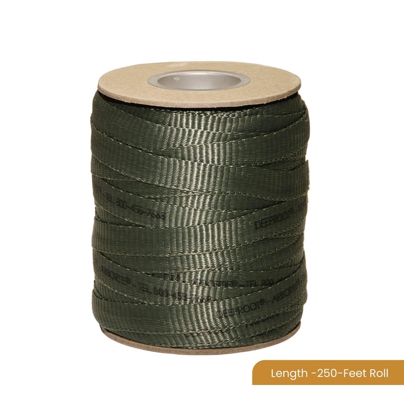 DeepRoot ArborTie Tree Straps for Staking and Guying, Flexible Tree Support Straps, Versatile Tree Rope, Tree Ties For Street Trees, Orchards, and Landscape Trees, 250’ Roll, Olive (AT 2G)