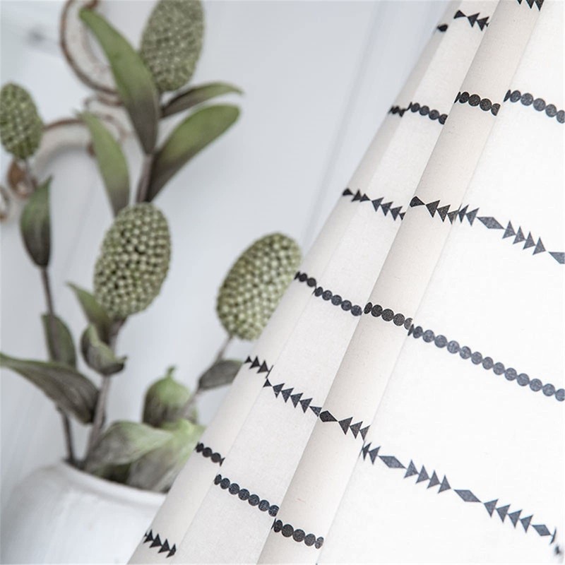 Deeprove Boho Curtains 96 Inches Long, White Cream Cotton and Linen Bohemian Print Black Tassel, Geometric Semi-Blackout Window Panel Farmhouse Drape for Living Room, Rod Pocket, 1 Panel, W59 x L96