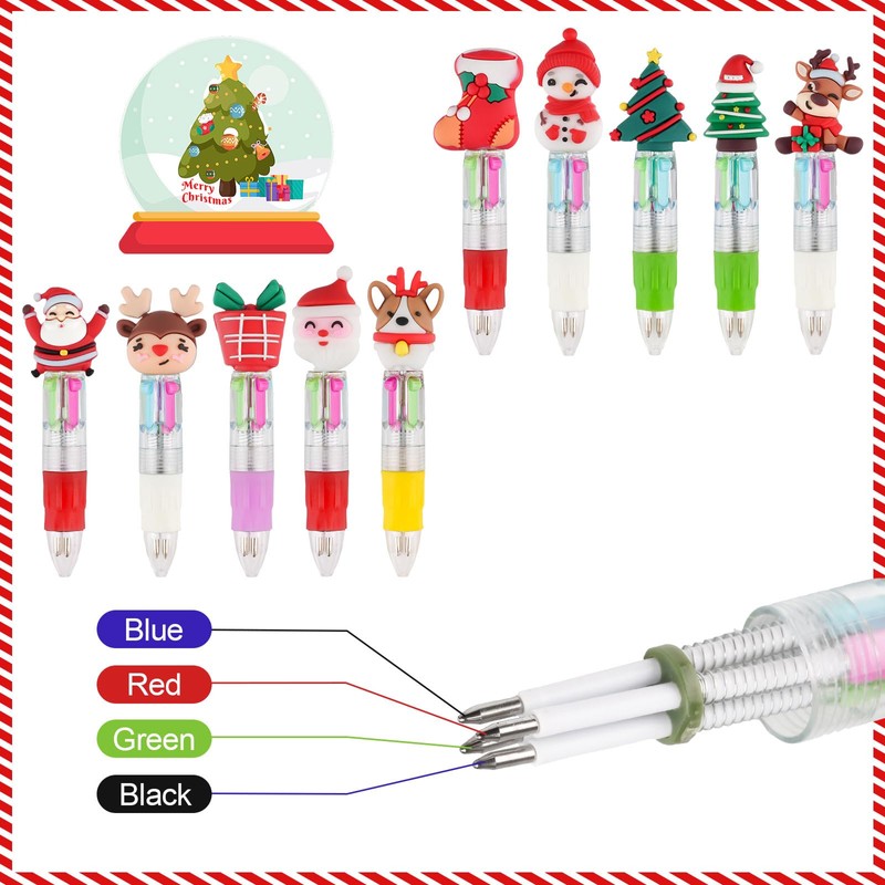 - ✨【4 COLOUR PENS ALL IN ONE】You will get 10 packs of 4-in-1 christmas multi colour pen with 4 ink colors. Each ballpoint pen includes black, blue, red, and green for you to switch between, enough to fill christmas cellophane bags.