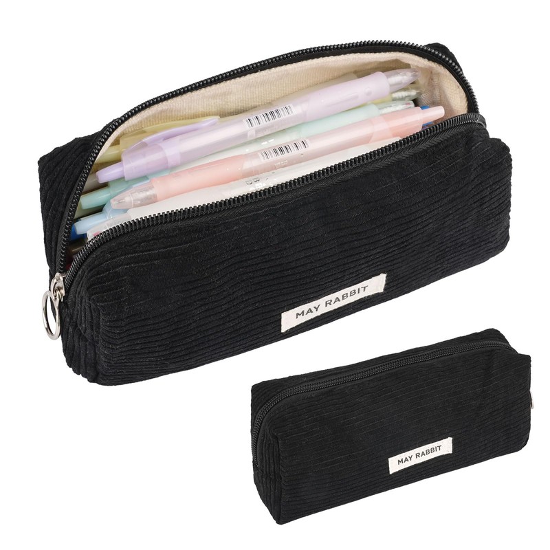 Deepton Pencil Case Corduroy Fabric Pencil Case Milky White for Girls Teenagers Pencil Case Pencil Case School Pencil Case for School Office - Black