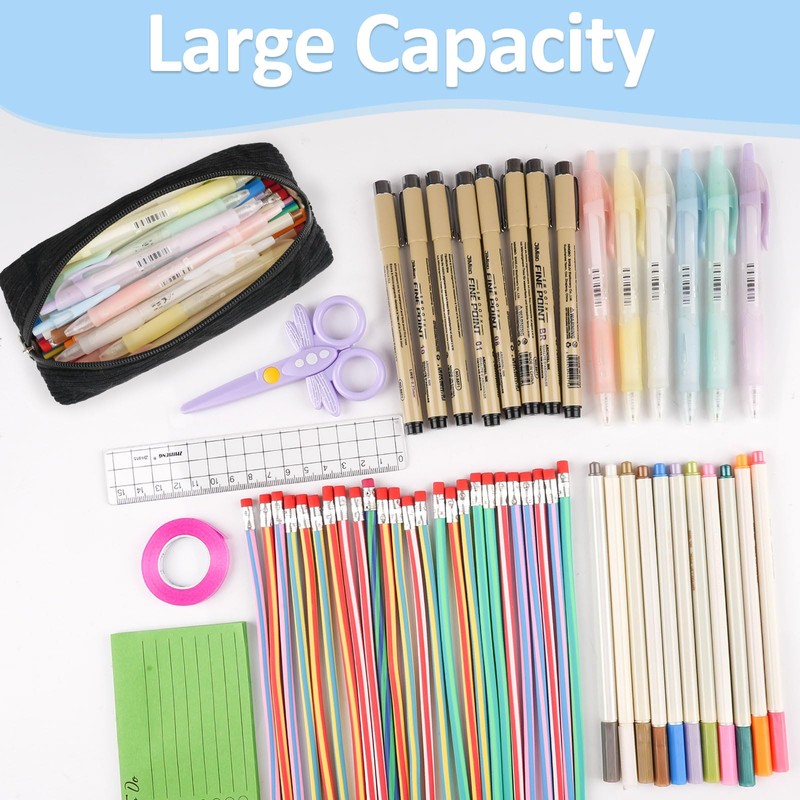 • Premium materials: our pencil case is made of high-quality corduroy fabric, is durable, scratch-resistant and wear-resistant. This pen bag with strong zip is perfect for storing a lot of pens and pencils.