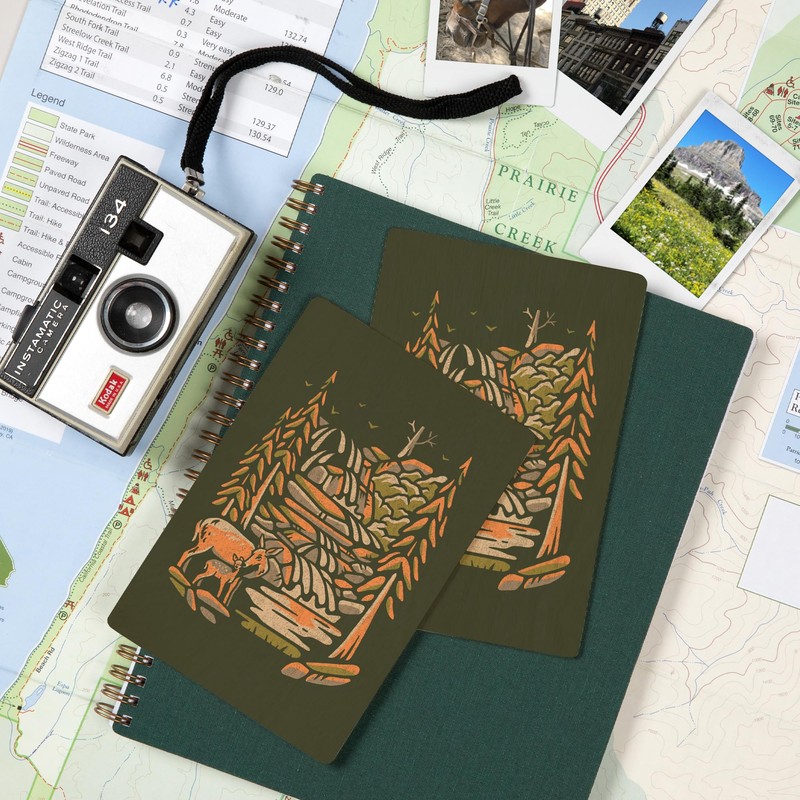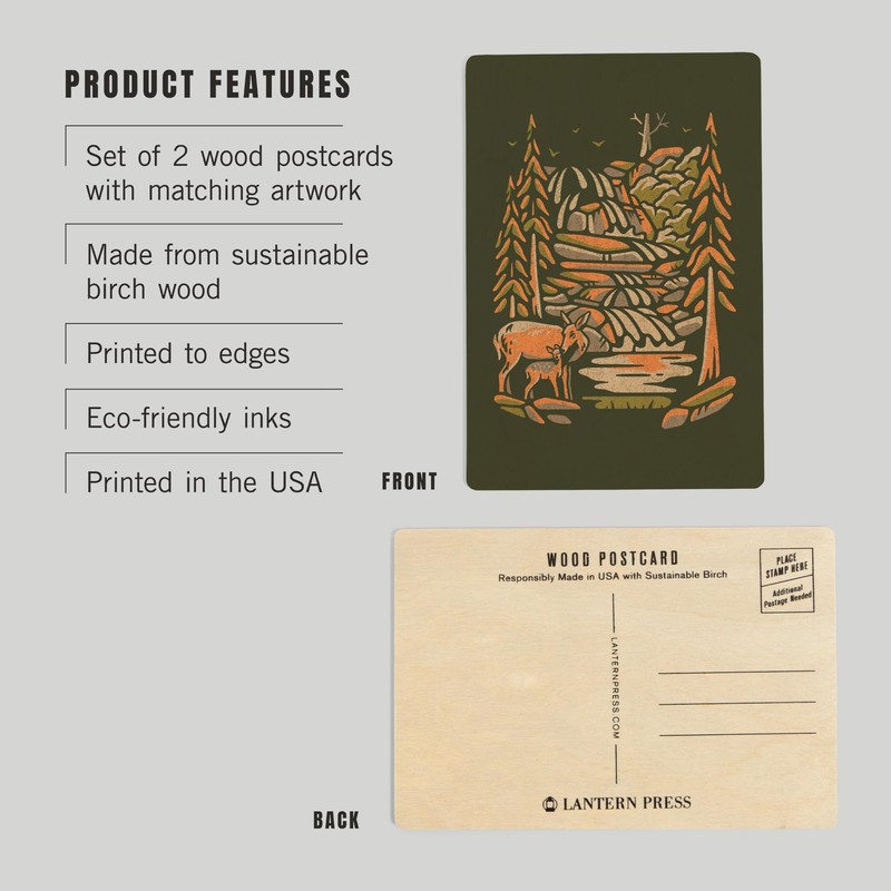 - Deer and Waterfall, Distressed (4x6 Birch Wood Postcards, 2-Pack Stationary, Rustic Home Wall Decor), high-quality sustainable wood printed in Seattle