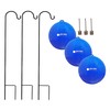 - Kit includes: (3) Deer Fly balls made from heavy duty weather resistant blue PVC, (3) 68" Tall 4-Piece Steel Shepperd Hook, (3) Inflation needle