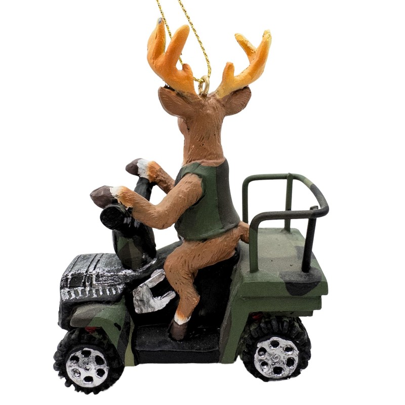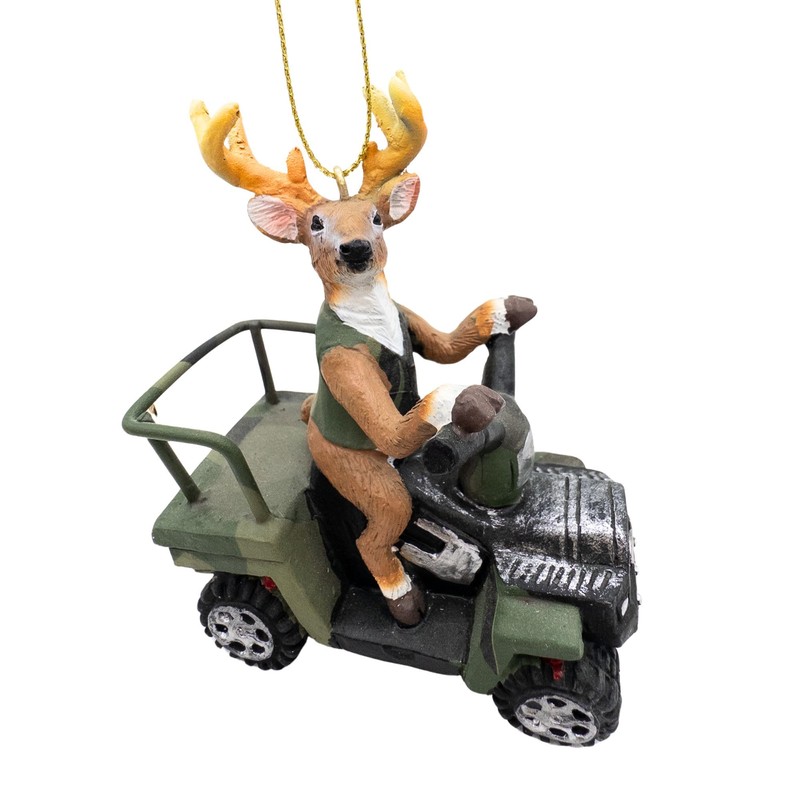 Deer Hunter Riding ATV Four Wheeler in Camouflage Gear Christmas Tree Funny Hunting Ornament Buck Hunters