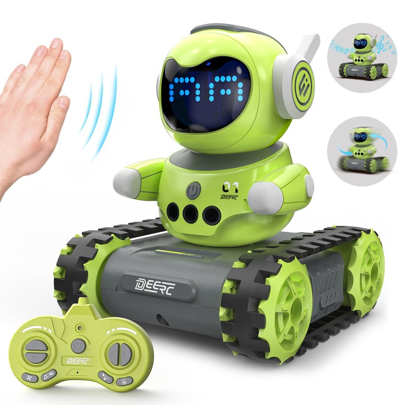 DEERC Robot Toys for Kids,Remote Control Emo Robot W/Auto Demo,Gesture Sensing,Flexible Head & Arms,Dance Moves,Music,LED Eyes,Rechargeable RC Toys Xmas Birthday Gifts for Boys Girls