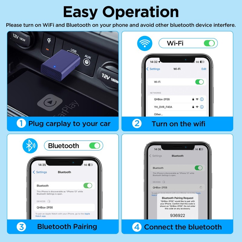 - WIRELESS CONNECTIVITY: Seamlessly transforms your wired CarPlay system into a wireless connection, eliminating the need for cables