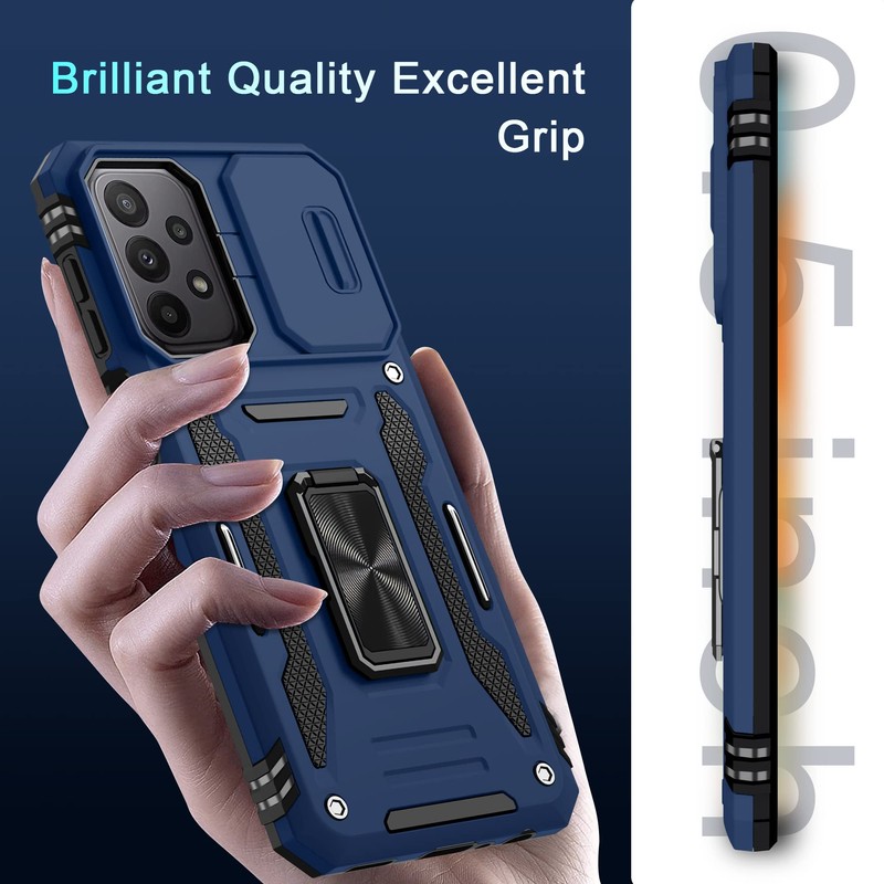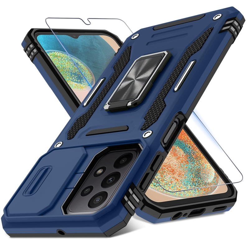 DEERLAMN Case for A23 5G/4G with Slide Camera Cover+Screen Protector,Rotated Ring Kickstand Military Grade Shockproof Protective Cover-Navy Blue