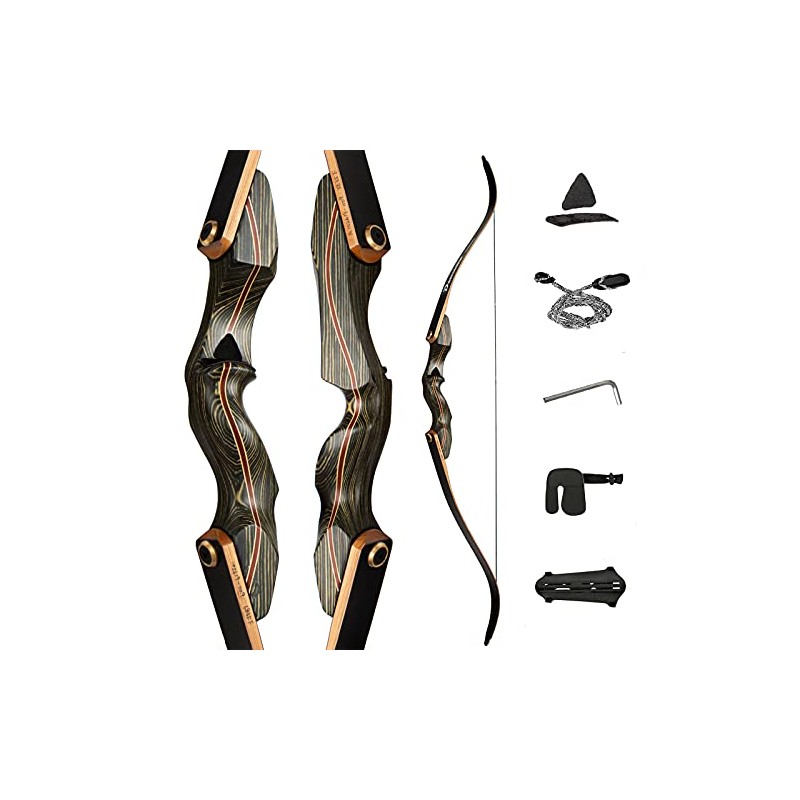 - Exceptional Strength and Stability--Deeseeker 60" Coyote recurve bow riser is built by High-density Dymond wood and comfortable medium style grip, and it's shaped by CNC machine. Bow limbs are laminated with maple wood core and high quality fiberglass material, they give this bow high performance, smoothy shooting and stability. Max draw weight 60# is good for deer hunting, min Draw weight 30# is friendly for archery beginners and back yard shooting.