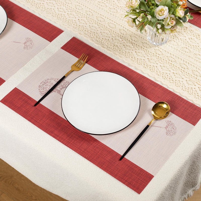DEERYARD Woven Placemats Set of 6 – Red & White Ginkgo Leaf Design – Heat Resistant, Waterproof & Easy to Clean – Perfect for Dining Table, Kitchen, Restaurant & Outdoor Use