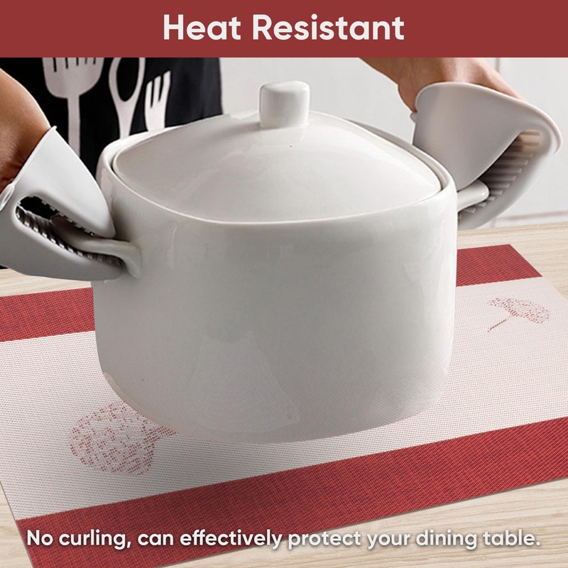 - Exceptional Heat Resistance: Engineered to protect your table from high temperatures, these placemats can withstand up to 212°F (100°C). For optimal longevity, we recommend using them below 176°F (80°C) to maintain their quality and appearance.