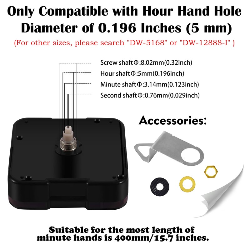 DEEWISH 12888 DIY Quartz Wall Clock Movement Set, Silent Mechanism Replacement Parts, Total Shaft Length 12.4 mm (31/64 Inch), (Black A Hands)