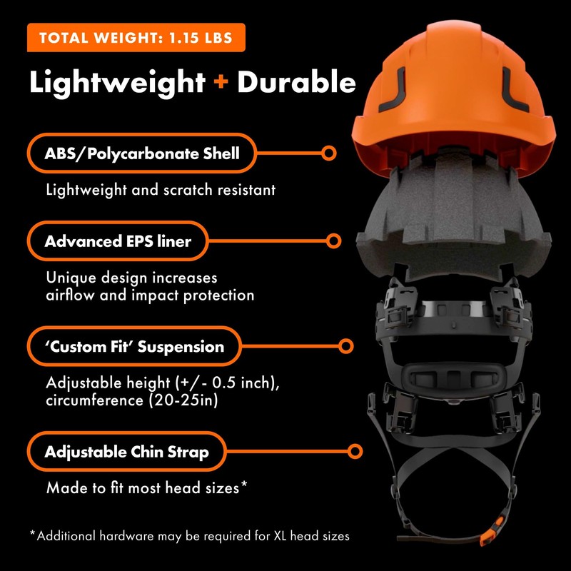 - OSHA & ANSI Z89.1 Type II Compliant Helmet: Superior side and top impact protection.