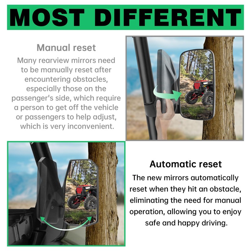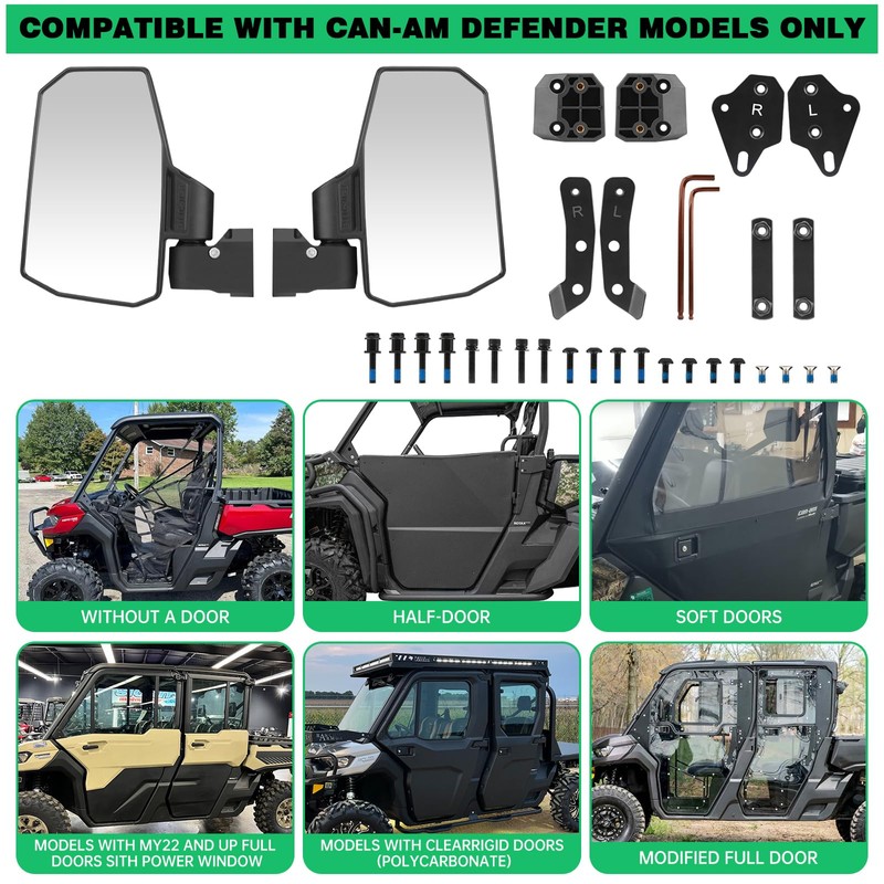 SHEJISI Defender Side Mirrors,The Spring Back Feature Allows Easy Reset After Fold,2024 New UTV Mirrors Compatible with Can Am Defender HD10 HD9 HD8 HD7 HD5,Suitable for No Door,Half Door,Full Door