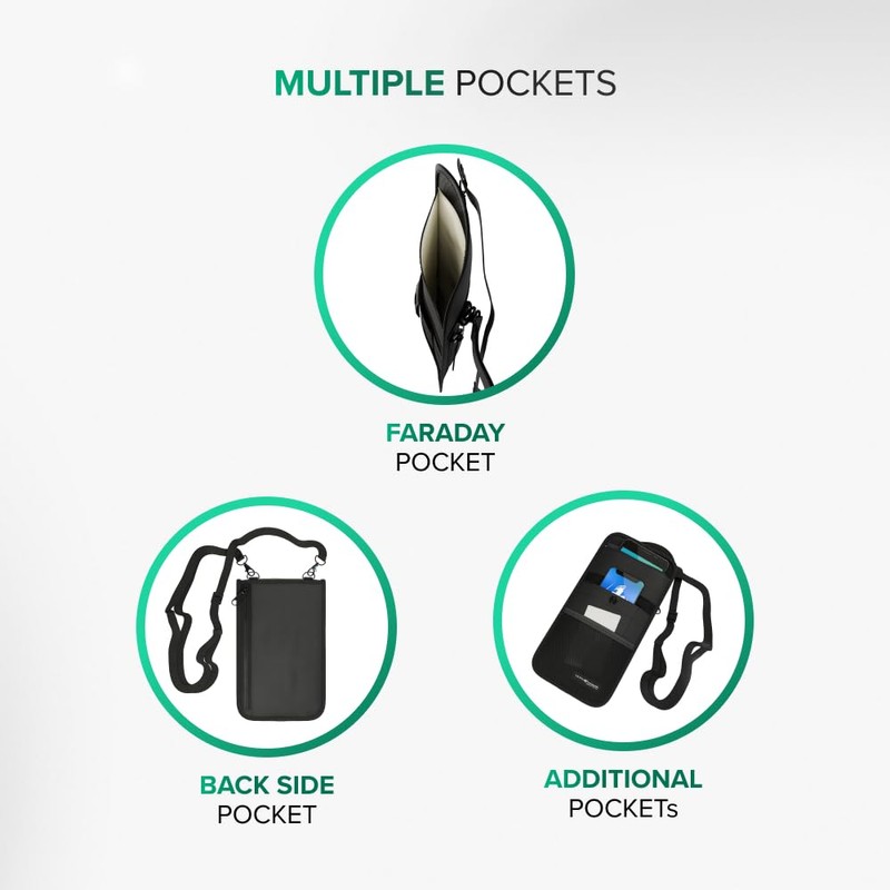 - ✅ PREMIUM DESIGN → High-quality, durable nylon exterior resistant to wear. Top interior pocket has VELCRO and snap closure to be completely signal-proof. Adjustable cross-body Strap. Zippered back pocket and front mesh pocket provide extra storage.