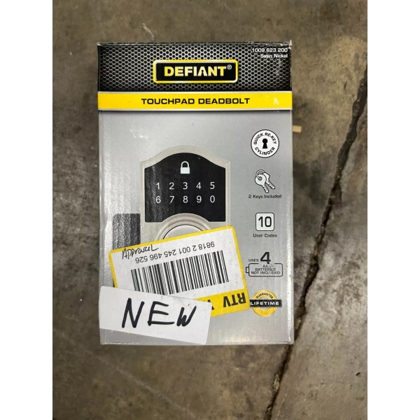 Elevate your home security with the Defiant 1009 623 200 Touchpad Deadbolt. This Deadbolt is designed with a sleek Satin Nickel finish that adds a touch of sophistication to any doorway. Crafted from durable nickel materials, it promises longevity and resistance to corrosion, ensuring your door is secured with a product that withstands the test of time. The model boasts a user-friendly touchpad interface, enabling quick and easy access. It's a perfect blend of functionality and style, compatible with a wide range of doors. The product's MPN is 1009 623 200, and it's a testament to Defiant's commitment to quality in their product offerings.