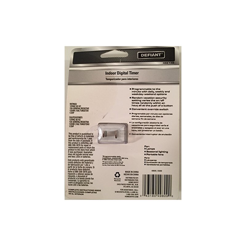 Defiant 15 Amp 7-Day Plug-In Digital Polarized Timer