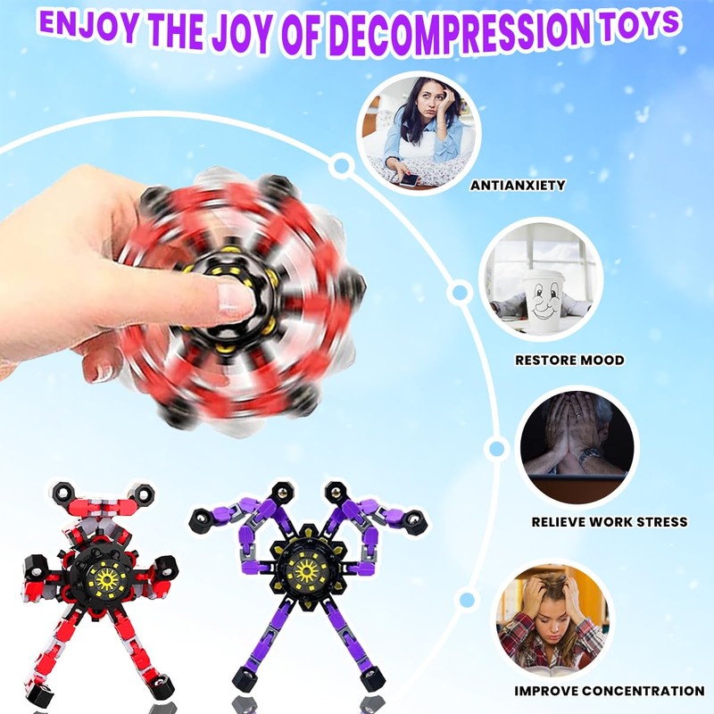 - Multi-function: Hot deformation fingertip decompression mechanical gyroscope variable DIY chain creative rotary decompression finger gyro, can also be used as a mobile phone stand, decoration, play, watch and so on.