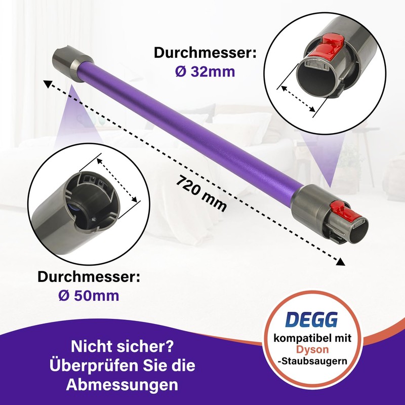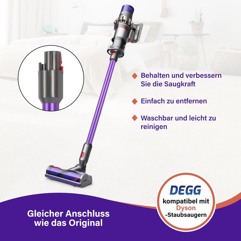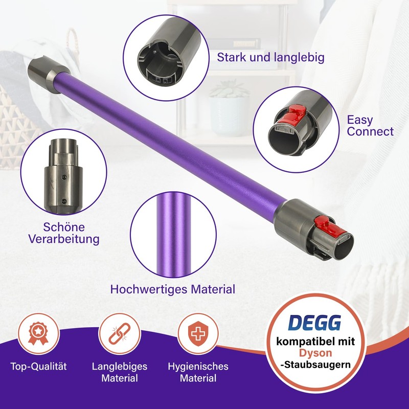 - Perfekte Passform - Das DEGG Teleskoprohr wurde speziell f1r eine perfekte Passform mit Ihrem Dyson Staubsauger entwickelt. Dank seines leichten Designs wird das Staubsaugen einfacher und komfortabler als je zuvor.