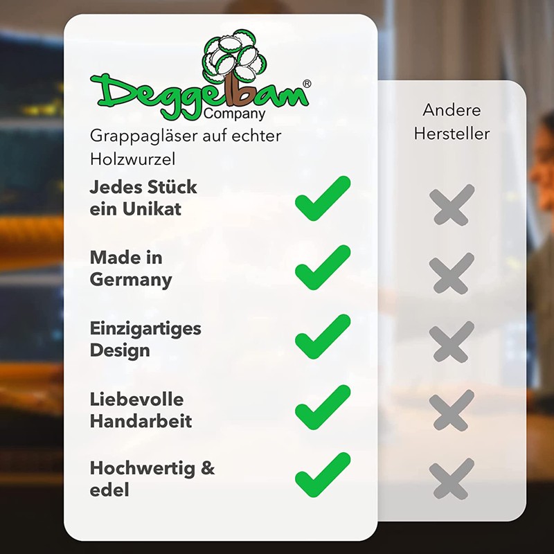 • Made in Germany: each individual glasses set is handmade with love and 100% environmentally friendly in Bavaria. This makes each piece unique and each root looks different.