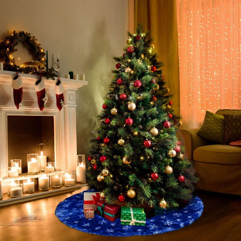 - 🎄【Material】- Blue Plush Christmas tree skirt made of thick and fluffy faux fur, design with sparkling snowflakes look like the real snowflakes dropping onto the snowfield, can create a wonderful snowy effect beneath the Christmas tree.