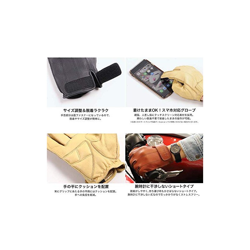 DEGNER Leather Touring Short Motorcycle Gloves Black XL TG-58