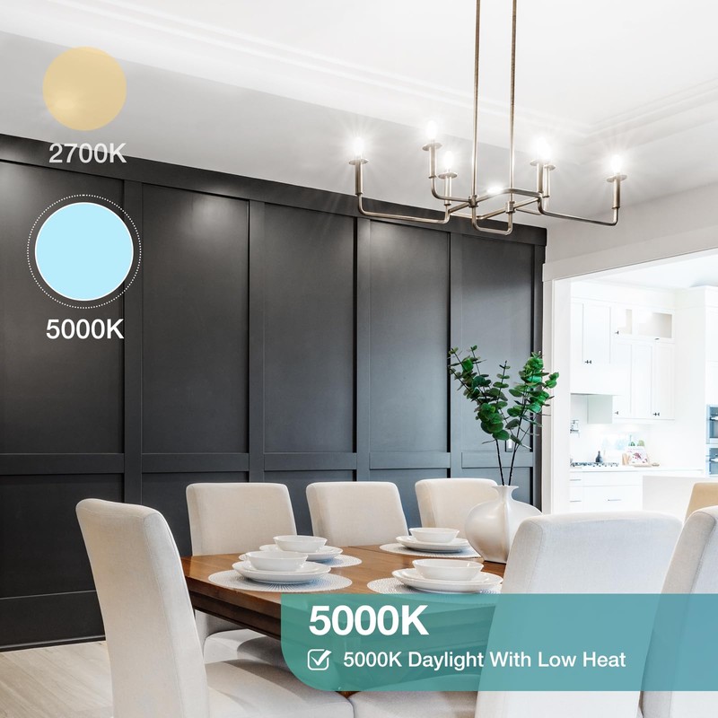 • Low Heat Output: This b11 led bulb operates with minimal heat, ensuring a cooler and safer environment compared to incandescent bulbs. For daily use, they help protect you and your appliances. (Note: Not dimmable, pls don't use them with dimmers)