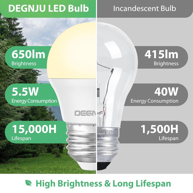 DEGNJU DEGNJU LED Refrigerator Light Bulb 40 Watt 120V, Appliance Bulb Soft White 2700K, Fridge Light Bulb, 650 Lumen A15 Light Bulb, Ceiling Fan Light Bulbs, E26 Medium Base, 5.5W, Non-Dimmable, 4 Pack