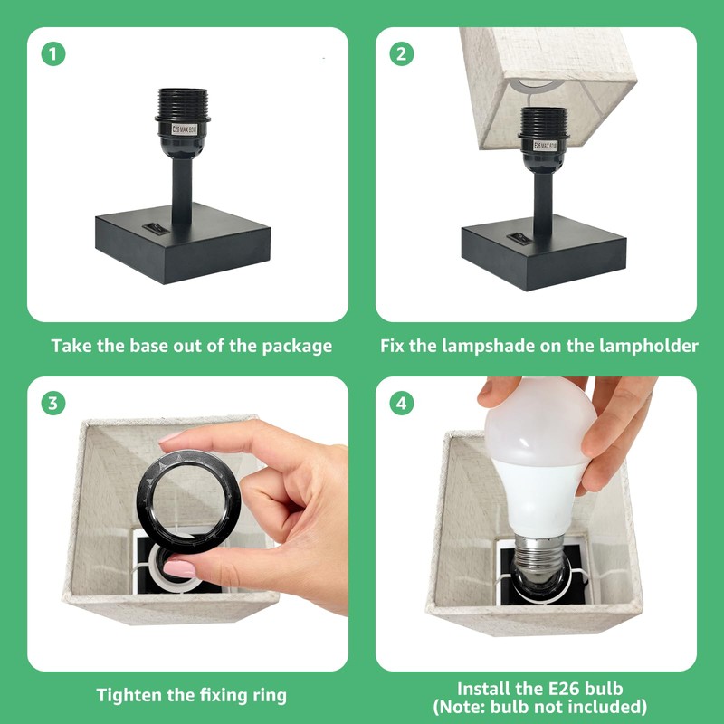 - 【Instant On/Off 】This lamps for night stands comes with an instant on/off switch and AC outlets(2-prong), plug and play, one-button switch, easy to install and use. Please note that bulbs are not included. (Please use the LED bulb, max watt of the LED bulb is 60W)