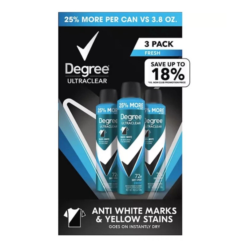 3 Pack Degree Men’s Ultraclear Black+White Deodorant Dry Spray, Fresh, 4.8oz.