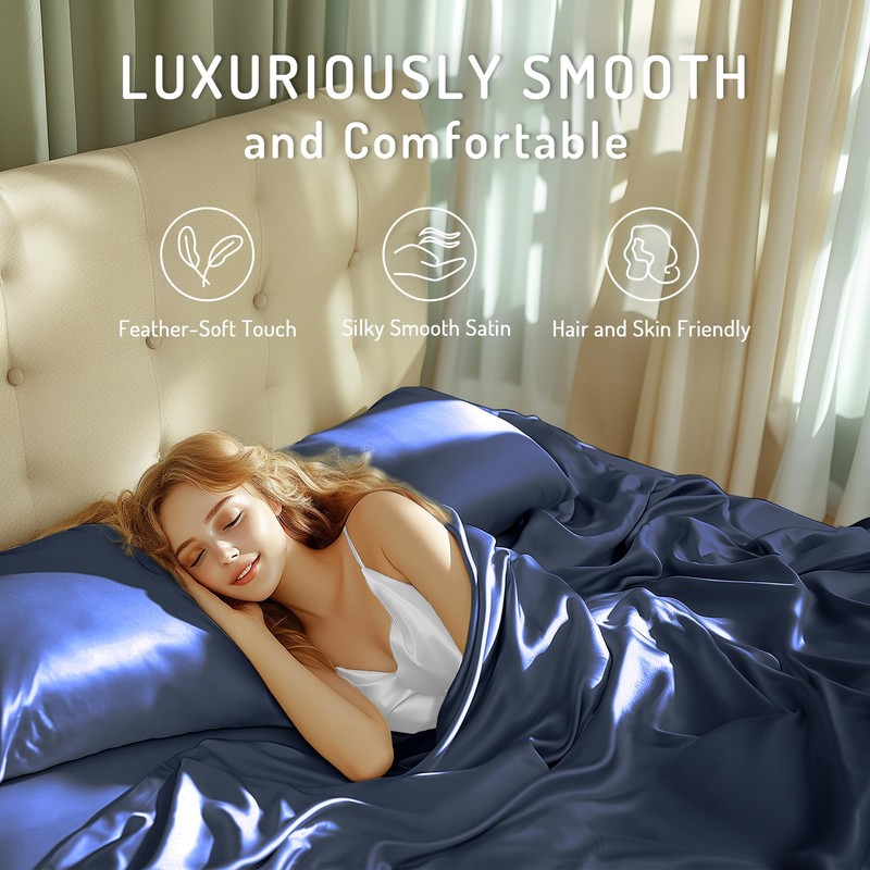 【Luxuriously Affordable Satin Sheets】 Achieve a 5-star, hotel-worthy bedroom with an elegant satin pillowcase and sheet set. Our satin sheets are crafted from silky-smooth fabric that enhances your sleep quality by reducing friction. with 10 colors to match your style.