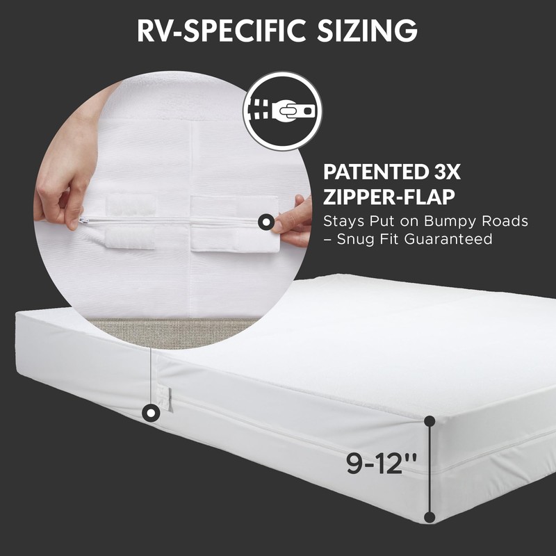 Upgrade your RV sleep today! Say goodbye to lumpy, unprotected mattresses and hello to worry-free travels