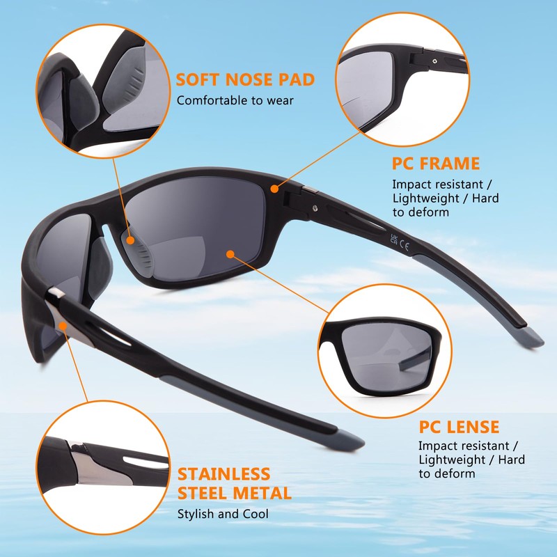 - 【UV400 Protection】The bifocal sun readers adopt new upgraded premium UV400 protective coating lenses. Greatly block the harmful sun's UVA/UVB/UVC rays, protect your eyes from damaging. Great for driving, sports and other outdoor adventures.