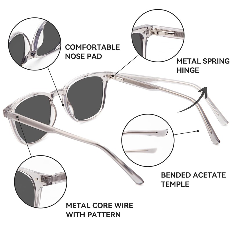 - 【High Quality Material】Durable acetate frame and temple, comfortable to wear; Metal spring hinge, suitable for various faces; HD polycarbonate clear lens, anti-reflective and restore true color.