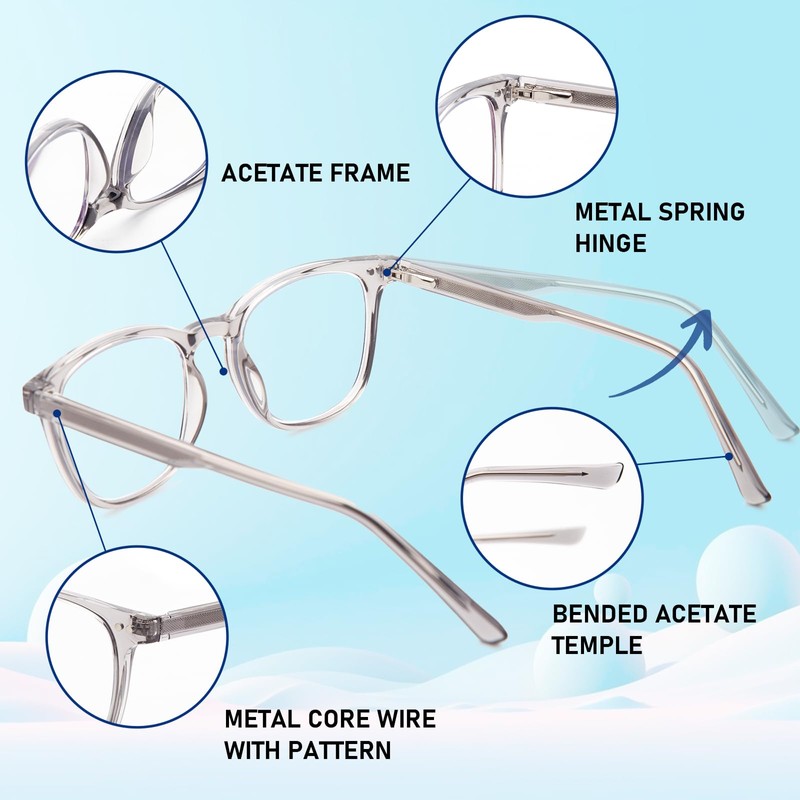 - 【High Quality Material】Durable acetate frame and temple, comfortable to wear; Metal spring hinge, suitable for various faces; HD polycarbonate clear lens, anti-reflective and restore true color.