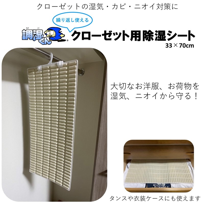 Dehumidifier-kun Reusable Closet Dehumidifier Sheet, 13.0 x 27.6 inches (33 x 70 cm), 2 Pieces, No Water Disposal, Clothes, Dehumidifier, Deodorizer, Moisture Control, Odor Absorption, Garment Case,