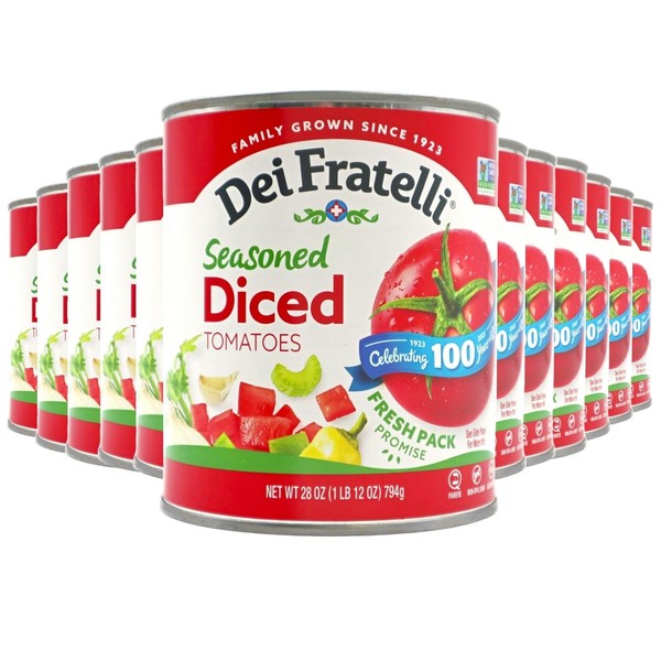 Dei Fratelli Seasoned Diced Tomatoes (28 oz. Cans, 12 pack) - Vine-Ripened – Non GMO, Gluten-Free