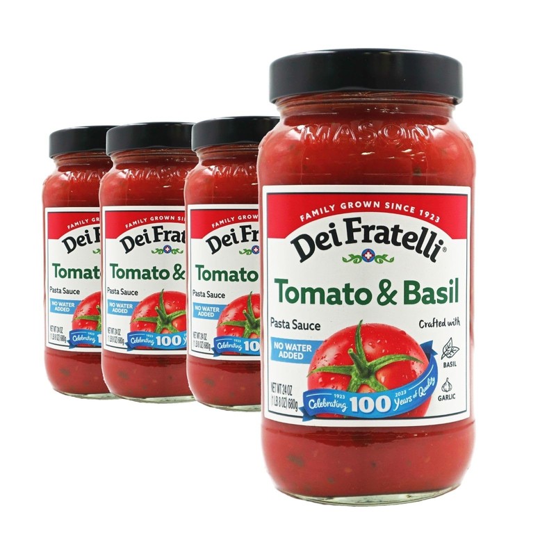 Dei Fratelli Tomato & Basil Pasta Sauce (24 oz. jars; 4 pack) - No Water Added - Never from Tomato Paste - 5th Generation Recipe