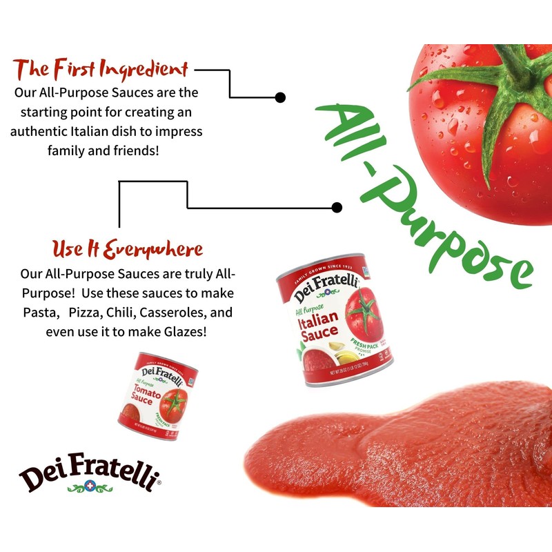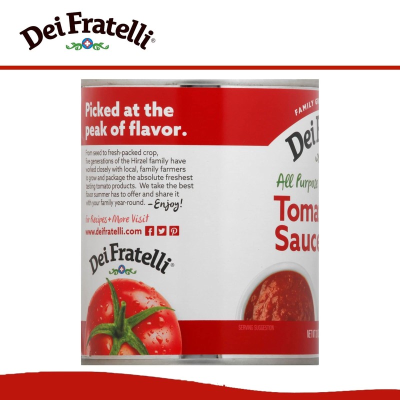 Dei Fratelli Tomato Sauce (28 oz. cans, 6 pack) - Vine-Ripened - No Water, No Paste – Non-GMO, Gluten-Free - 5th Generation Family Recipe