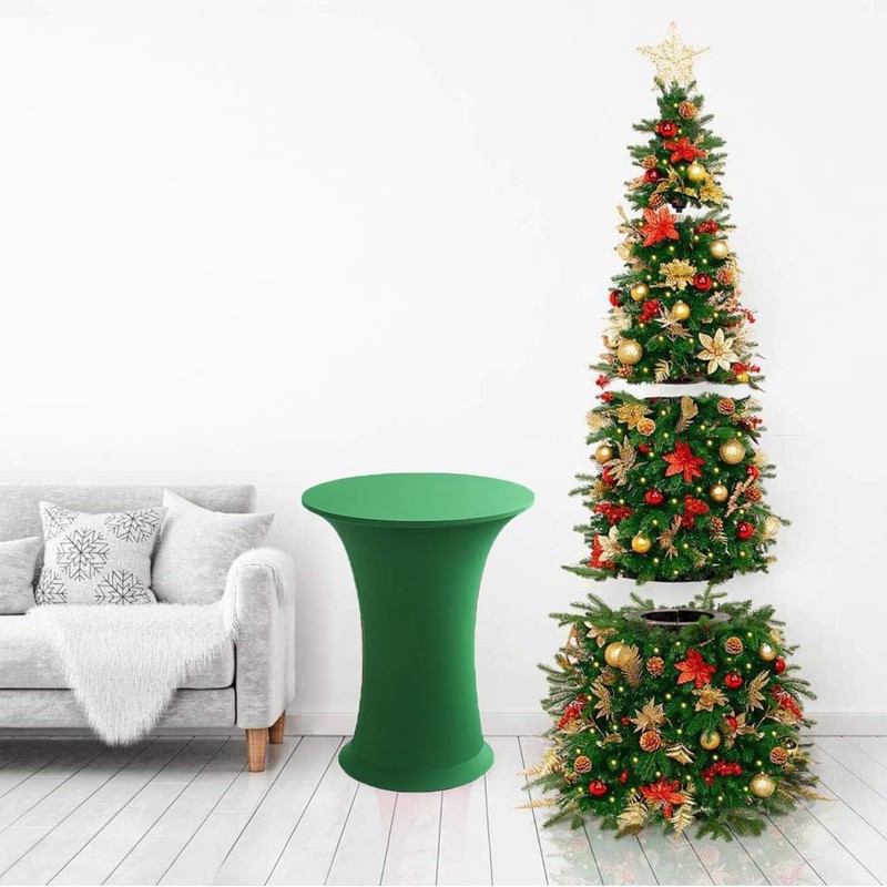 Deisy Dee 24x43 Cocktail Spandex Stretch Round Tablecloth Table Cover C124 (Green)