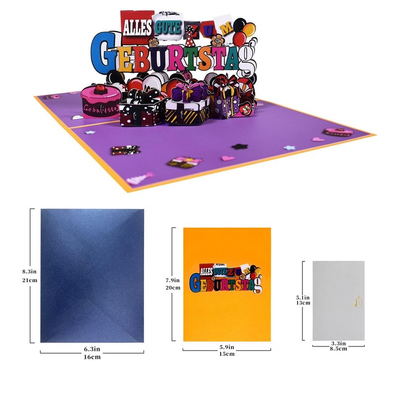 Dekarten German Birthday Card, 3D Three-Dimensional Pop Up Cards for All Occasions, Greeting Cards for Friends, Children, Wife, Husband, Mum, Dad, Grandma, Grandpa, Colleagues, Folding Cards with