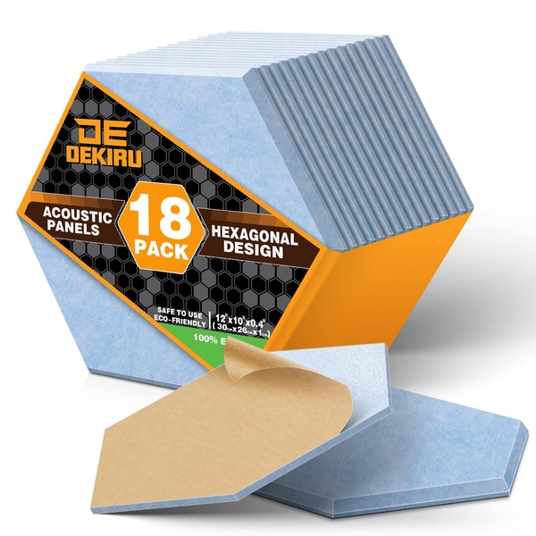 DEKIRU Self Adhesive Soundproof Foam Panels 18 Pack, 12''X10''X0.4'' Hexagon Acoustic Panels, Easy Install Sound Absorbing Panels for Home Recording Studio, Office, and More (Sky blue)