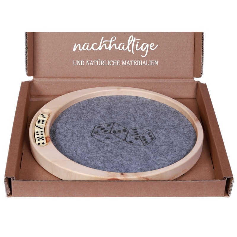 Dekobox Dice plate made of pine wood including dice, pine dice board, round