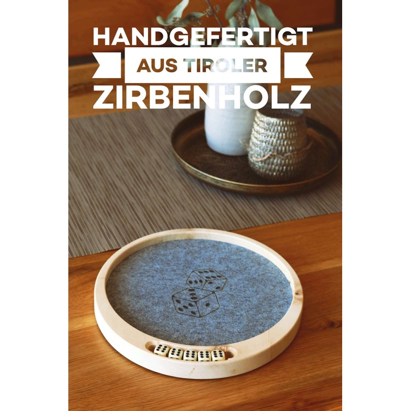 - Premium cube plate made of solid pine - includes 5 pieces of dice