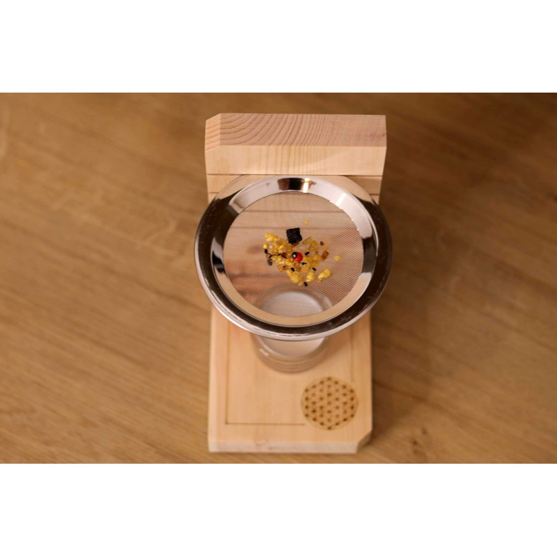 Our tip for resins and incense that tend to stick or drip: place a piece of aluminium foil first on the sieve, so that you prevent the residue from dripping through and cleaning is much easier.