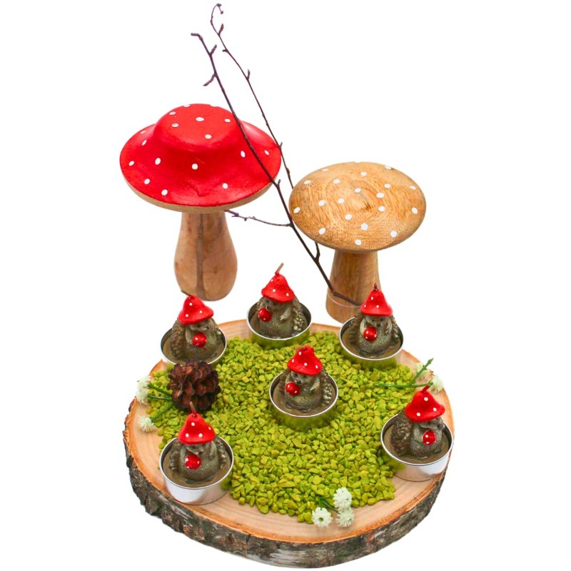 Dekohelden24 Set of 6 Tea Light Candles as Hedgehog with Mushroom Hat and Mus...