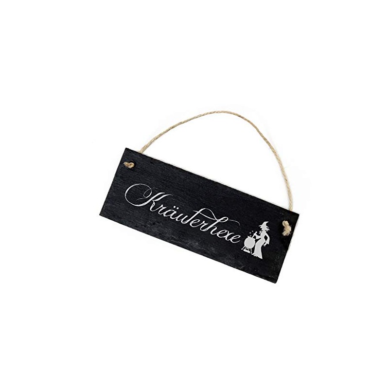- Decorative decorative sign made of slate for hanging with laser engraving text herbal witch and motif witch on the kettle.