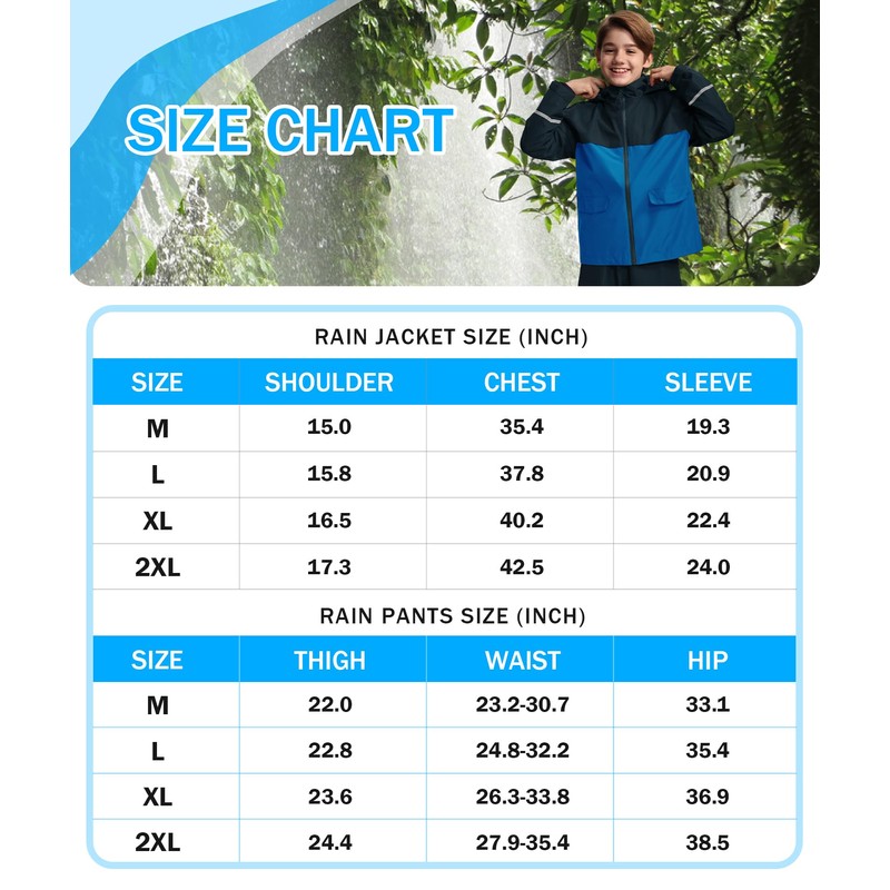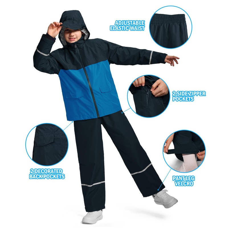 - Waterproof Lightweight Kids Rain Suit: Our Kids Rain Suit is made with premium waterproof polyester, ensuring that your child stays dry and comfortable in any weather condition. The lightweight material is rip-resistant and flexible, allowing your child to move freely during outdoor activities such as climbing, hiking, camping, cycling, fishing, and more